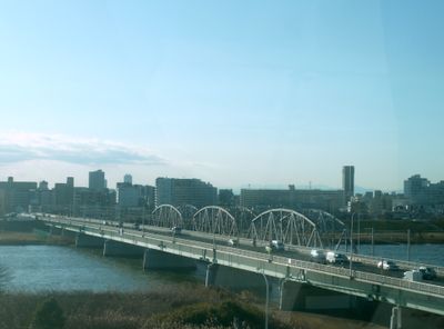The bridge incorporates drop-in spans over the river, a construction method selected for economic efficiency in Japanese bridge engineering.