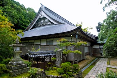 Daijoji is a Buddhist temple in Kami with several connected buildings that include meditation halls, a lecture room, and kitchen facilities. The spaces are linked by a corridor that allows visitors to move between the different areas and get a sense of how the complex is organized.