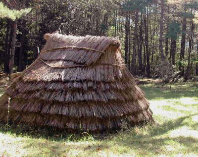 The Ōmiyama ruins contain excavated remnants of pit dwellings, shell mounds, and ritual spaces spread across elevated terrain near water sources.