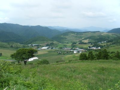 Ōnogahara is a karst tableland in Ehime Prefecture that stretches across a high plateau with elevations between 1,100 and 1,400 meters (3,600 and 4,600 feet). The terrain features limestone formations emerging from grasslands, creating a distinctive patchwork landscape.