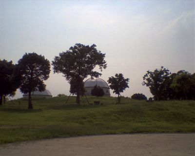 Nakoku-no-oka Historical Park is an archaeological site in Kasuga containing burial grounds and remains from the Yayoi period. The excavations reveal over 300 graves, including pottery tombs, earthen pit burials, and wooden coffin graves preserved in their original positions.
