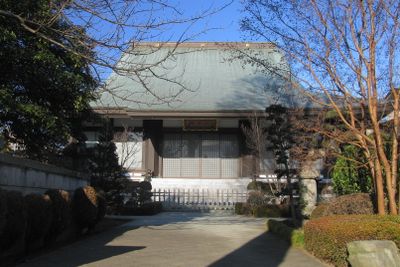 The temple grounds contain stone monuments and family graves, reflecting the continuing role of Buddhist institutions in Japanese funeral practices.