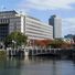 Osaka City Hall is the municipal administrative center located in the Nakanoshima district, featuring a blend of modernist design with orange neo-Renaissance architectural elements. The building contains offices and meeting spaces where day-to-day city operations and planning take place.