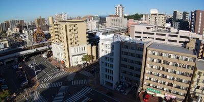 Meinohama is a residential district in Nishi-ku that blends housing areas with shops, including the Meinohama Steps complex with restaurants and furniture stores. The neighborhood extends from the waterfront to modern commercial streets, mixing older sections with newer development.