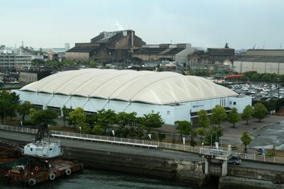 The Himeji Minato Dome features a steel-framed membrane roof structure and spans across 21,046 square meters of land near Himeji Port.