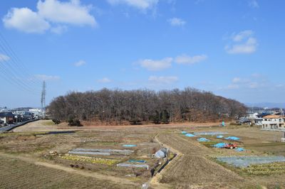 The Ota Tenjin-yama Kofun extends 210 meters in length with a keyhole shape, featuring a square front section and circular rear portion at 40 meters elevation.