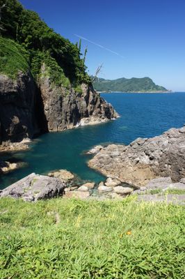 The park extends along the Sea of Japan coastline, featuring walking paths, stone lanterns, and observation points that showcase the ocean panorama.