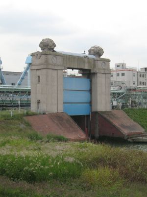 Kawasaki kako suimon Floodgates, Modern floodgate infrastructure in Kawasaki, Japan.