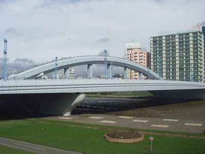 Horohira Bridge, Steel arch bridge over Toyohira River in Sapporo, Japan
