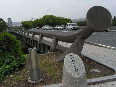 The bridge carries pedestrian and vehicle traffic along the 100-meter wide Peace Boulevard, connecting the Peace Memorial Park to central Hiroshima.
