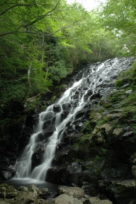 布滝, Mountain waterfall in Tsuyama, Japan.
