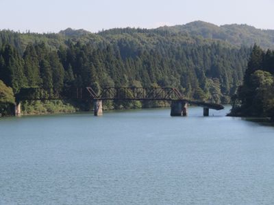 The Old Chibasaki Bridge spans across the Agano River, featuring traditional Japanese engineering methods and construction techniques that exemplify regional infrastructure development.