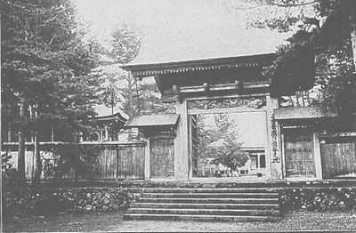 The temple houses ancient red pine trees within its grounds, which stand as natural monuments marking centuries of religious practice.