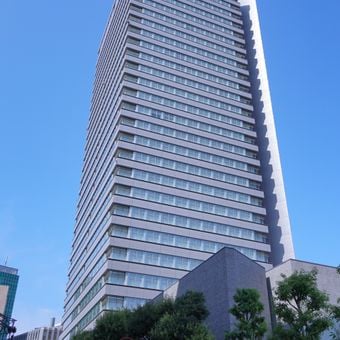 The Tohoku Electric Power Company Head Office Building is a modern skyscraper in Sendai's business district, featuring a glass and steel facade with a clean geometric design. The structure rises prominently above the surrounding area and serves as a recognizable landmark in the city's skyline.
