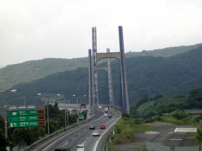Tomei Ashigara Bridge, Cable-stayed road bridge in Oyama, Japan.