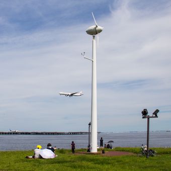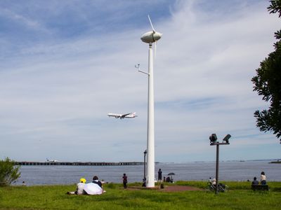 The location near Tokyo International Airport allows visitors to observe aircraft movements while enjoying the park's recreational facilities.
