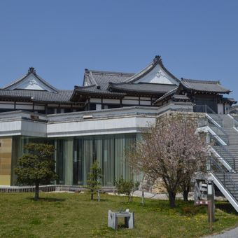 The museum building incorporates architectural elements of traditional Japanese design, creating a connection between the structure and its exhibited content.
