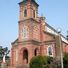 Tabira Catholic Church is a house of worship in Hirado built with red brick featuring Romanesque elements including rounded arches, sturdy pillars, and two matching towers flanking the entrance. The structure combines European religious design with Japanese building methods and construction materials sourced locally.