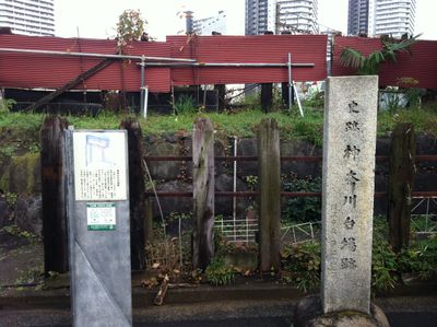 The Kanagawa Battery stands on Tokyo Bay with artillery positions and stone walls that extend along the waterfront of Kanagawa-ku.