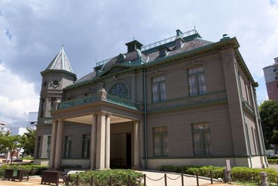 The building showcases French Renaissance forms that were uncommon in Japan during the Meiji period. Visitors see the original gray and mint green exterior today, which reflects the European influence of that era on local architecture.