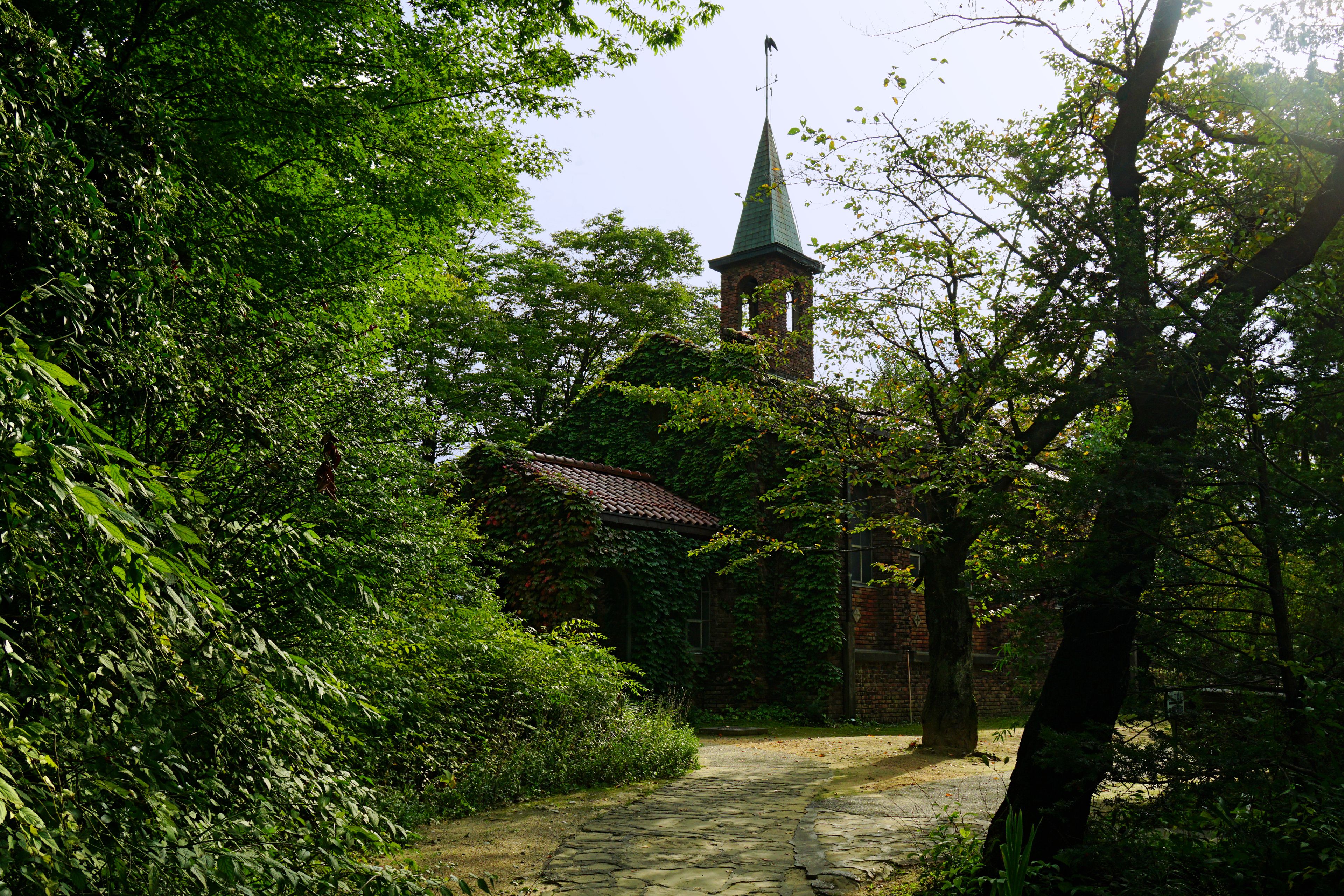 The museum building incorporates Christian architectural elements to reflect the religious beliefs of Rokuzan Ogiwara, who traveled through Europe, America, and Egypt studying art.