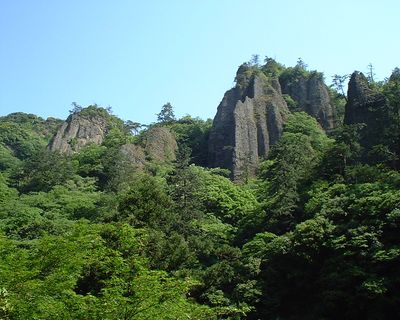 Tachikue Gorge is a natural ravine in Izumo where cliffs rise over 100 meters above the Kando River, creating a dramatic geological formation. The site stretches along the riverbank with a two-kilometer walking path that allows visitors to experience the full scale of these rock walls and their layered structure.