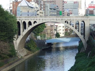 The Hijiri Bridge spans the Kanda River, connecting Surugadai and Yushima districts with a steel and concrete construction measuring 92 meters in length and 22 meters in width.
