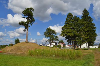 The Tsunozuka Kofun extends 45 meters in length with a circular portion measuring 28 meters in diameter and reaches a height of 4 meters.