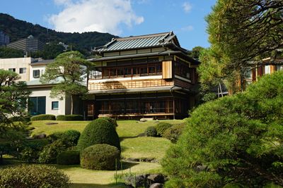 Kiunkaku is a historic villa in Atami featuring multiple buildings that blend Japanese architectural elements with Western design features. The property includes specialized spaces such as a music hall, exhibition gallery, and a tearoom overlooking traditional Japanese gardens.
