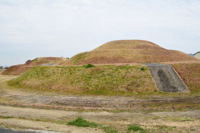 The Kanayama Kofun consists of two connected circular mounds measuring 85.8 meters in length, with the southern section reaching a height of 9.4 meters.