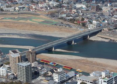 Nagara Bridge, Steel bridge across Nagara River in Gifu, Japan.
