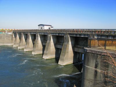 The structure incorporates specialized engineering features that allow precise control of water levels while maintaining ecological balance in the surrounding ecosystem.