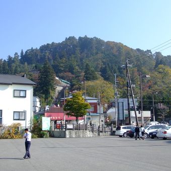 Mount Iimoriyama rises 314 meters above Aizuwakamatsu city, featuring stone steps, monuments, and walking paths leading to its summit.