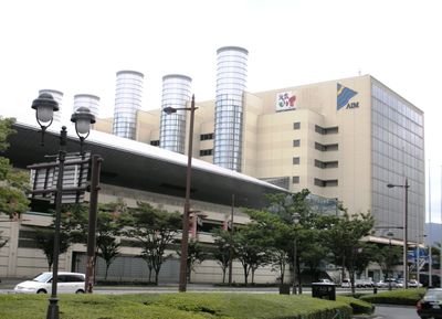 The Asia-Pacific Import Mart building complex serves international trade purposes with exhibition spaces, meeting rooms, and storage facilities in Kitakyushu prefecture.
