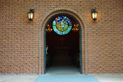 A brick chapel with stained glass windows stands within the museum grounds, creating light effects that complement Fujishiro's shadow art installations.