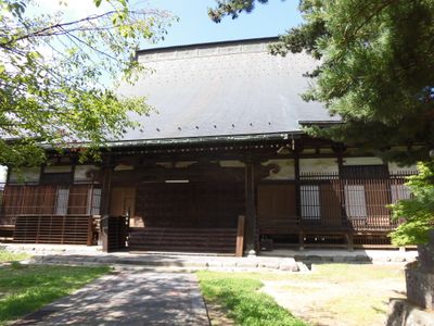 The Senshō-ji temple stands in the heart of Yamagata, following traditional Buddhist architectural principles with its central prayer hall and surrounding garden landscape.