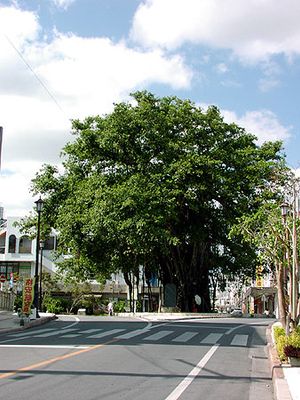 The tree holds connections to local folklore through stories of the Kijimuna spirits, which according to Okinawan tales inhabit banyan trees.