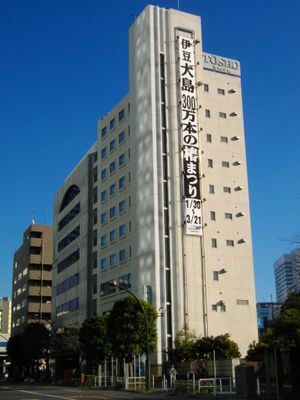 The Tōshokaikan building combines traditional Japanese architectural elements with modern design, featuring exhibition spaces and meeting rooms across multiple floors.