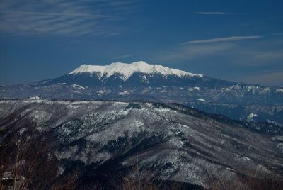 Funa Yama rises to a considerable height in central Japan, offering views across multiple valleys and neighboring mountain ranges in the region.