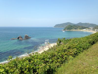 Visitors can reach Futamigaura by taking a train to Chikuzen-Maebaru Station and then catching a local bus to the beach area.