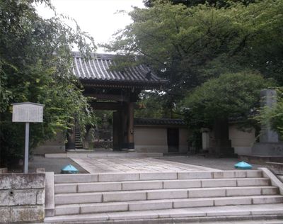 The Honryuji Temple stands within a large tree-filled garden that creates a green space in the urban environment of Nerima district.