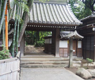 Myofukuji Temple features multiple buildings including a main hall, bell tower, gates, and ancestral halls within its extensive grounds.