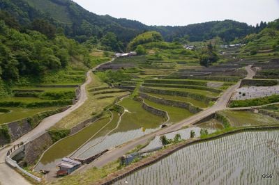 The rice terraces represent traditional Japanese farming methods, with local farmers maintaining cultivation practices passed down through generations.