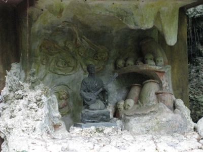 In April 1945, during the Battle of Okinawa, 140 villagers sought refuge in this cave, where 83 people died through mass suicide.