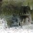 The limestone cave extends deep into the earth with a stone monument at its entrance commemorating the lives lost during World War II.