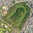 The Mozu-Furuichi Kofun Group consists of 49 keyhole-shaped burial mounds spread across three cities, ranking among the world's largest tomb structures. The site features mounds of varying sizes, many surrounded by moats and originally decorated with clay figurines arranged across their surfaces.