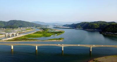 The Niyodo River Estuary Bridge spans 1,007 meters across the mouth of the Niyodo River, connecting Tosa City with Susaki City in Kochi Prefecture.