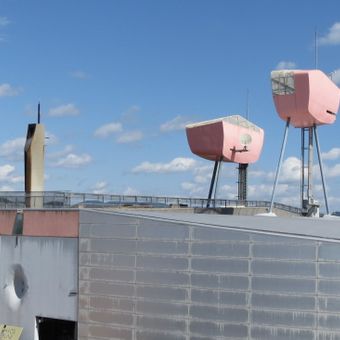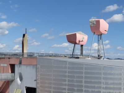 The building, designed by architect Osamu Ishiyama, includes a glass observation deck extending twelve meters above ground with panoramic views.