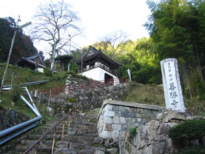 The Zenshō-ji temple sits at the base of mountains in eastern Shiga Prefecture, featuring traditional architecture with wooden halls and stone pathways.