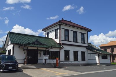 The museum occupies a former wooden station building from 1923, featuring multiple exhibition halls and a coffee shop inside a converted railway car.